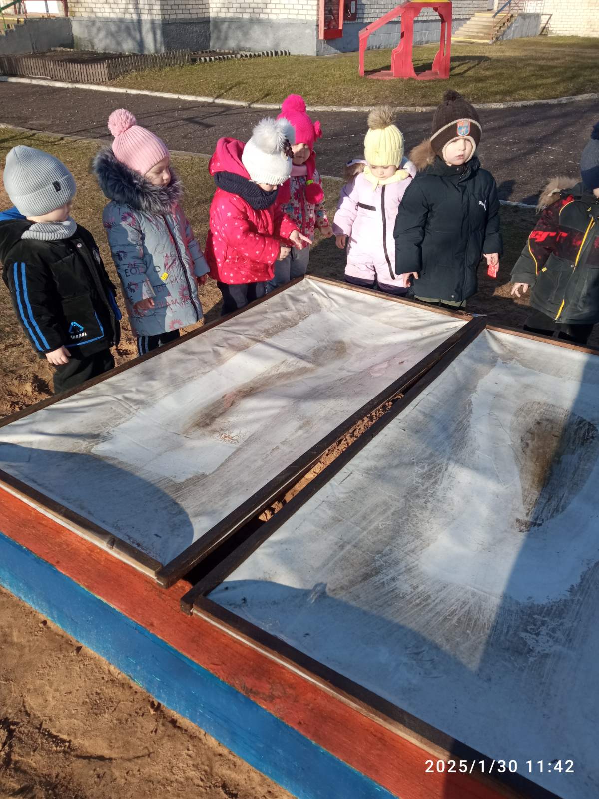 30.01.2025Воспитанники группы интегрированного обучения и воспитания N1 во время дневной прогулки увидели лёд на покрытии песочницы и с удовольствием наблюдали за его таянием.
