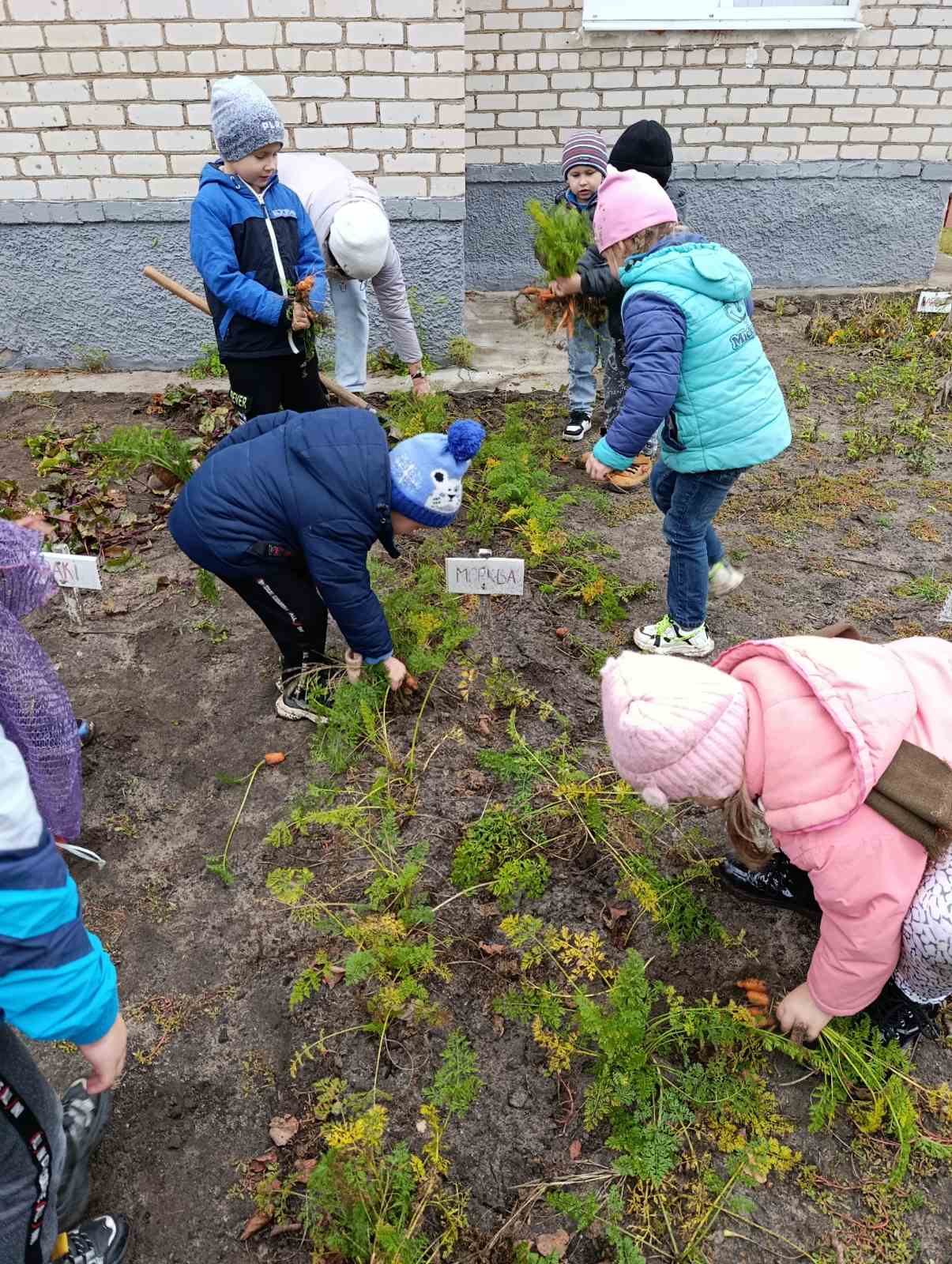 Воспитанники группы интегрированного обучения и воспитания N2 ГУО в рамках недели "Мы такие разные" во время прогулки с интересом и удовольствием потрудились на огороде - вырывали и чистили свеклу и морковь.
