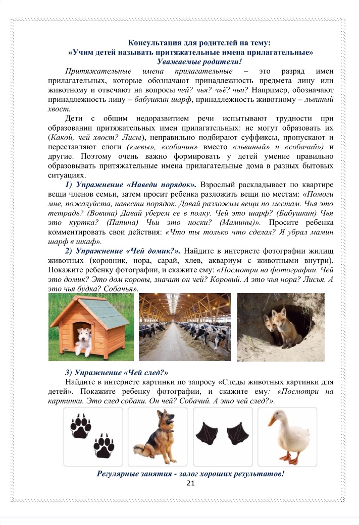 Консультация для родителей "Учим называть притяжательные имена прилагательных"