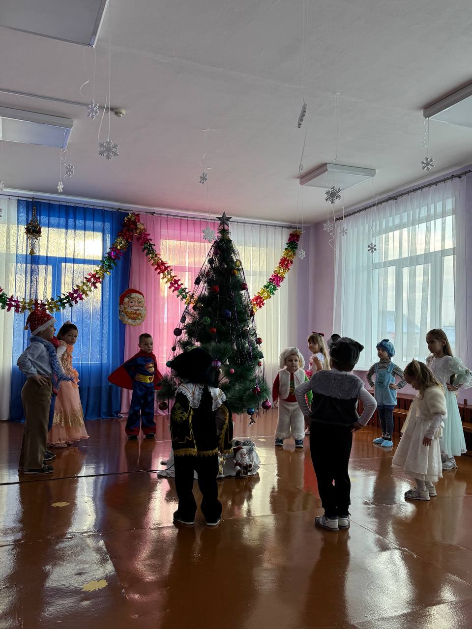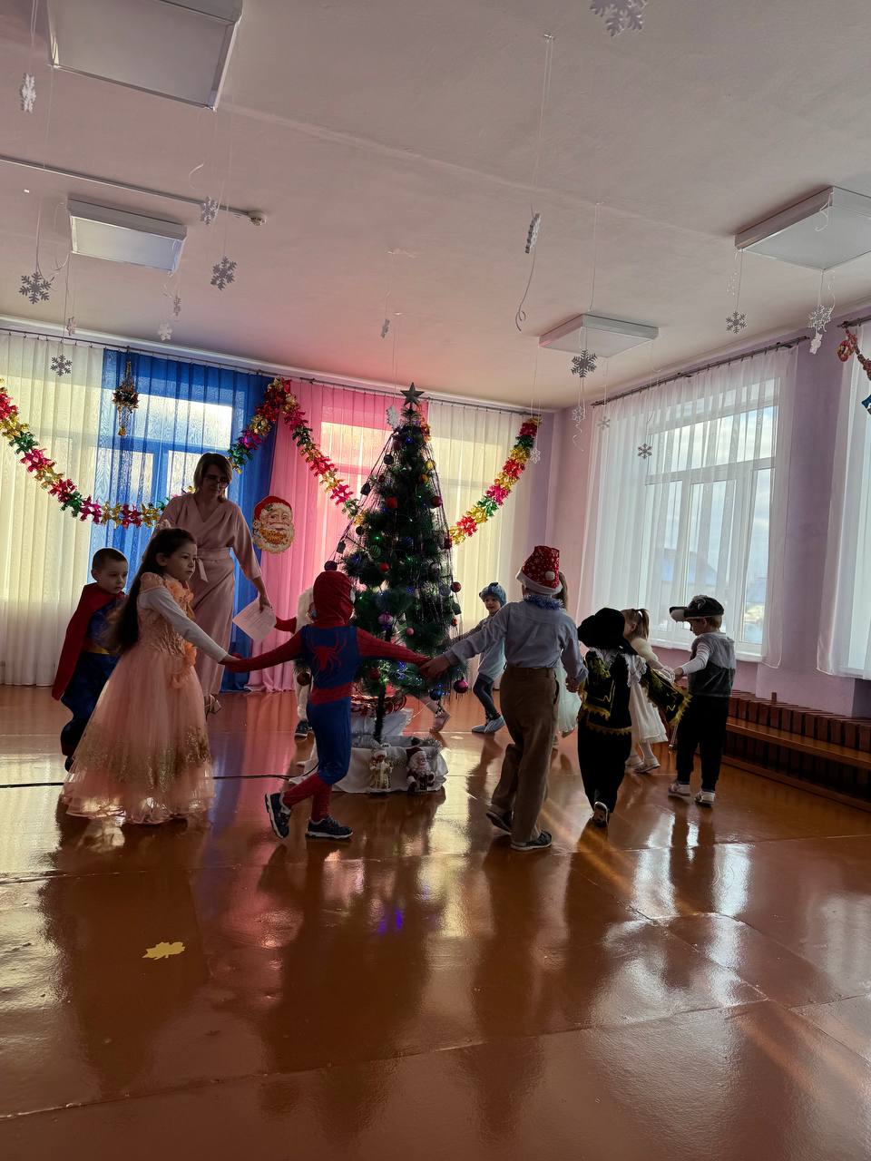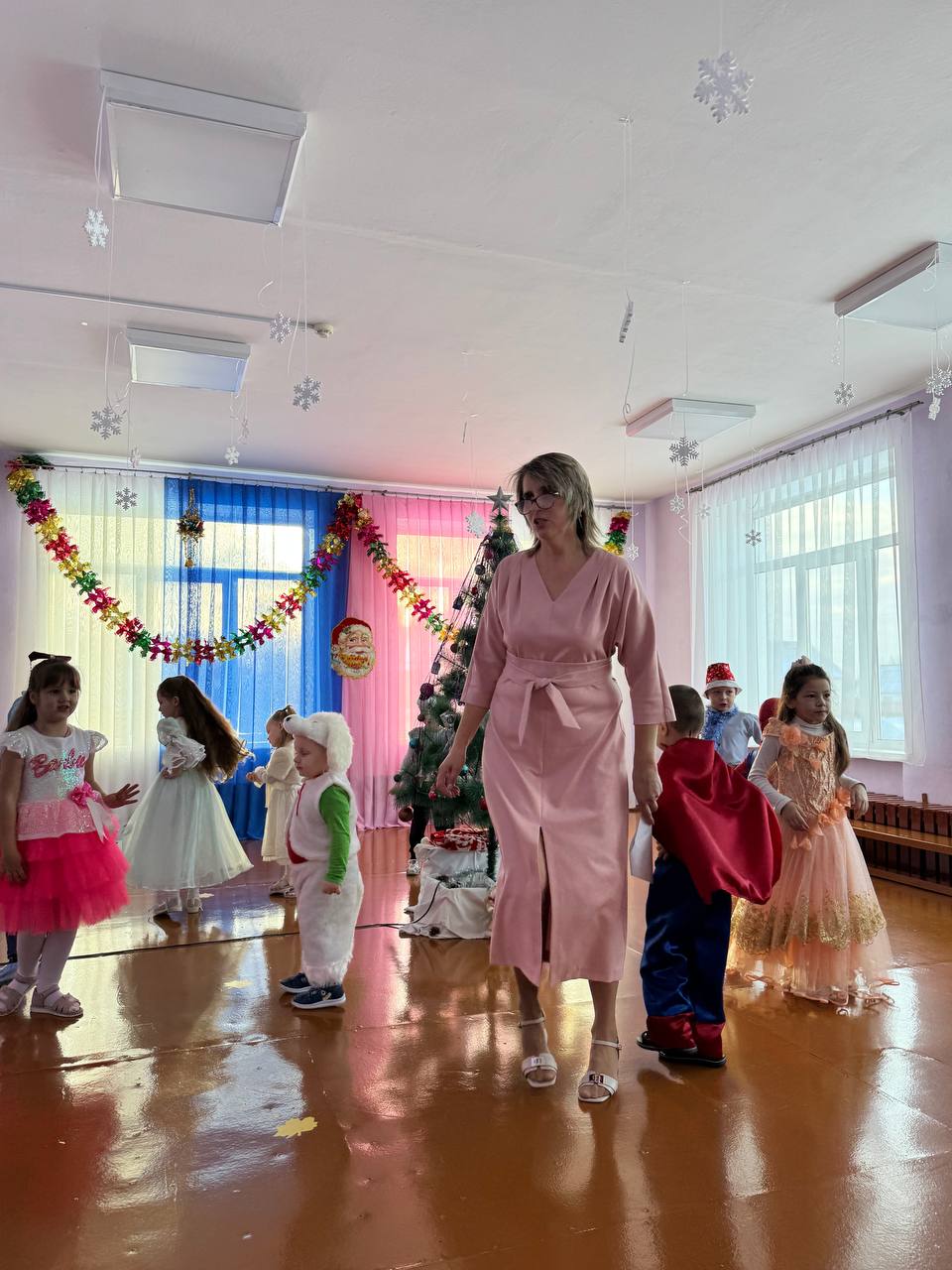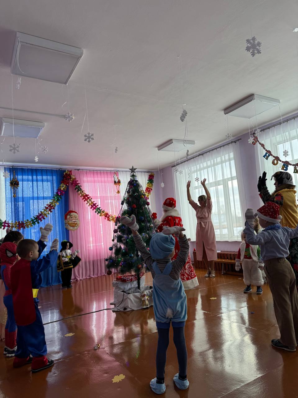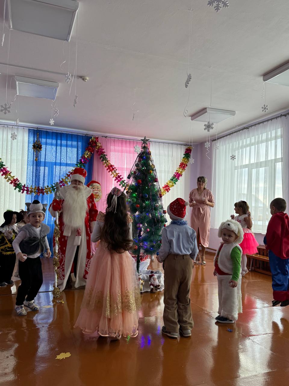 30 декабря в нашем детском саду был проведен новогодний утренник. Сказочно украшенный музыкальный зал, сверкающие огоньки, нарядная ёлка, увлекательные танцы и хороводы, стихи, загадки, веселые игры подарили ребятам и их родителям праздничное новогоднее настроение. Родители вместе с детьми водили хороводы, танцевали, принимали активное участие в играх. Восторженные эмоции переполняли всех присутствующих в зале – и детей, и гостей. Ребята были в восторге от неожиданных новогодних сюрпризов и встреч со сказочными героями.