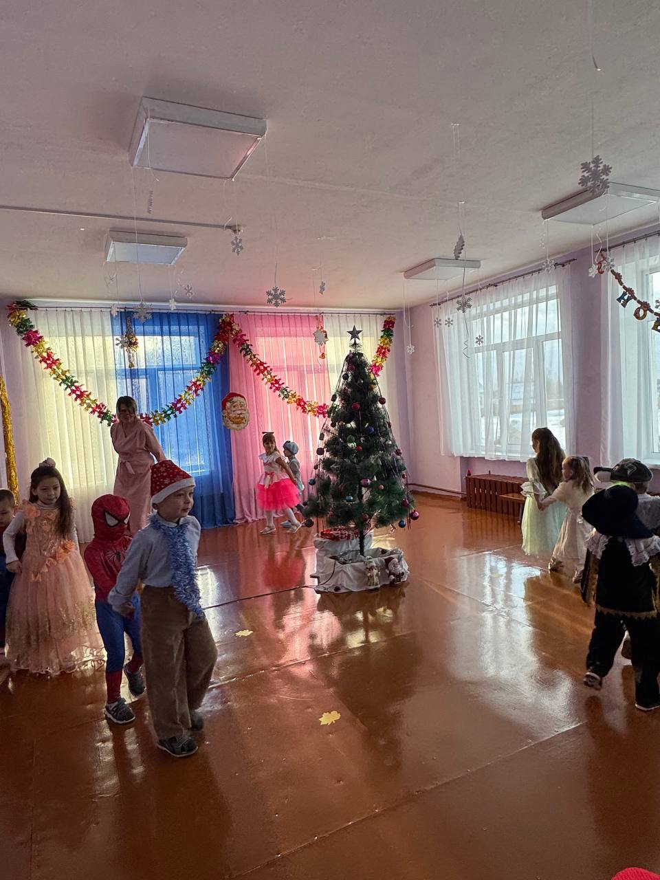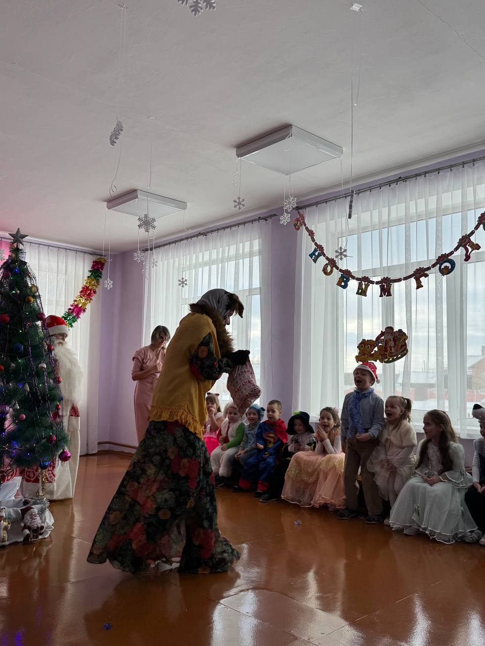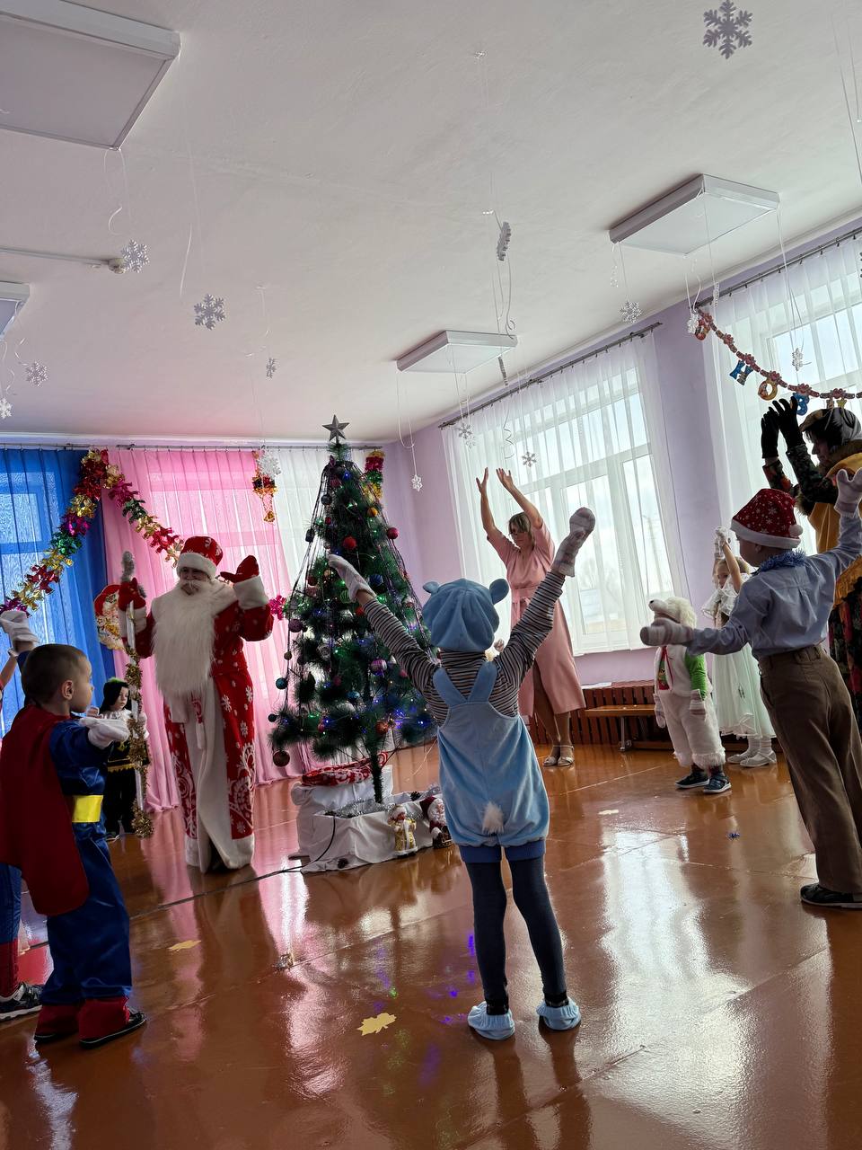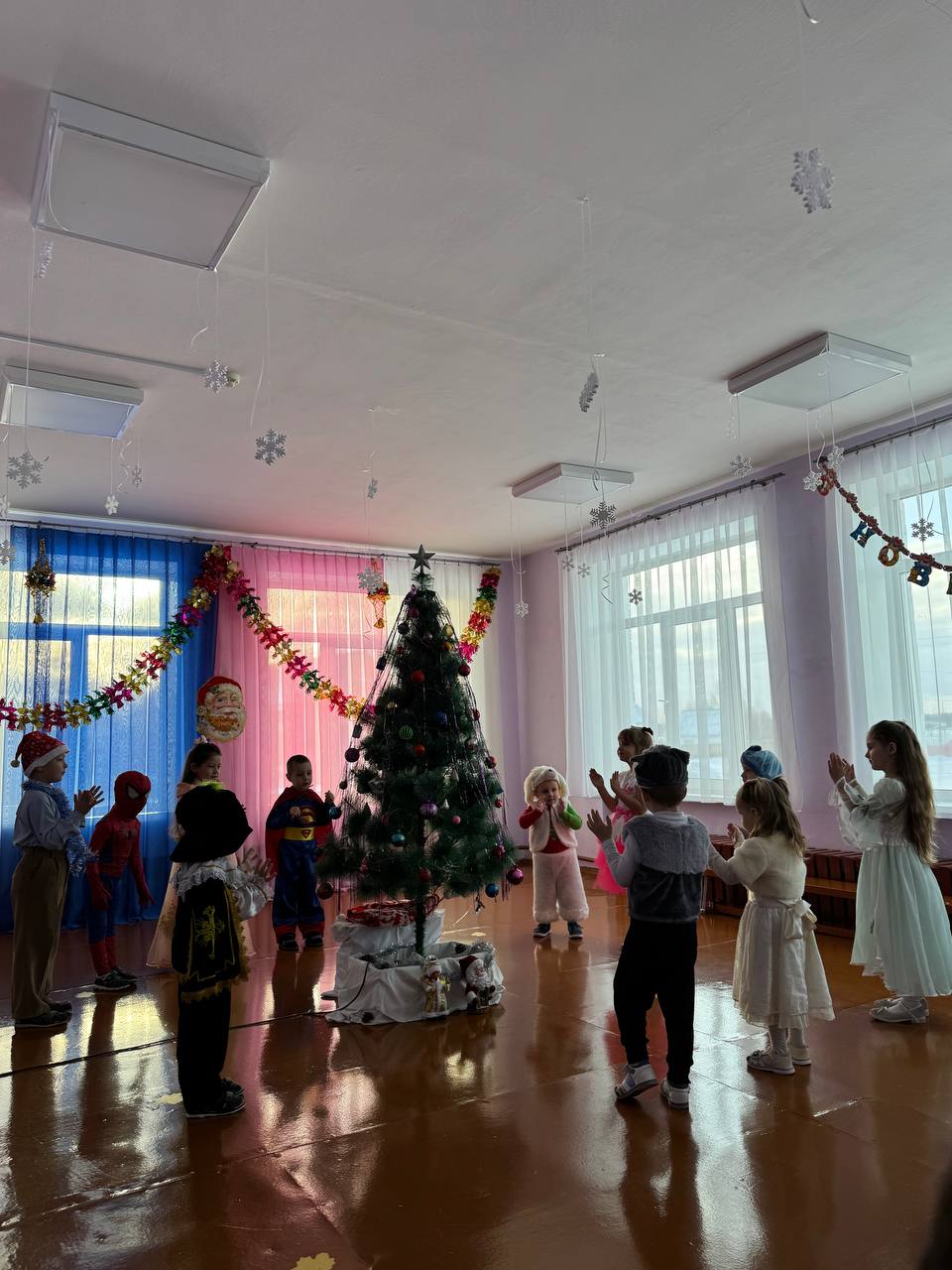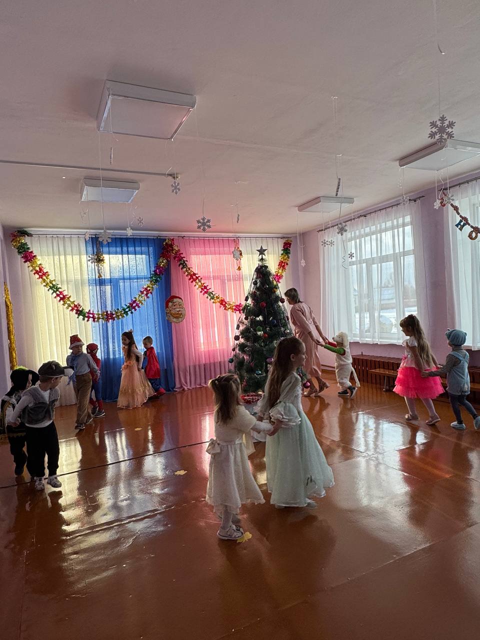 30 декабря в нашем детском саду был проведен новогодний утренник. Сказочно украшенный музыкальный зал, сверкающие огоньки, нарядная ёлка, увлекательные танцы и хороводы, стихи, загадки, веселые игры подарили ребятам и их родителям праздничное новогоднее настроение. Родители вместе с детьми водили хороводы, танцевали, принимали активное участие в играх. Восторженные эмоции переполняли всех присутствующих в зале – и детей, и гостей. Ребята были в восторге от неожиданных новогодних сюрпризов и встреч со сказочными героями.