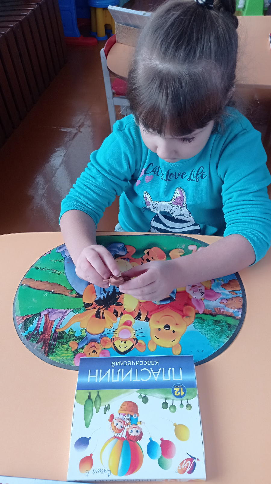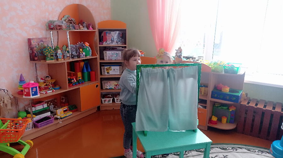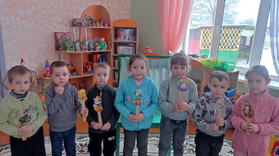 В процессе театрализованной деятельности у детей развивается внимание, речь, творческие способности. Ведь представляя определённого героя, ребёнок должен менять не только тембр и интонацию голоса, но так - же показать свой персонаж с помощью мимики, пластических движений. А это способствует развитию ритмики, музыкального слуха. Познакомившись с разными видами театра (на ложках, на магнитах, на тарелках, настольный театр) мы решили сделать театр из пластилина и бумаги по сказке «Теремок», а так же старшая подгруппа показала для младшей подгруппы сказку «Колобок».