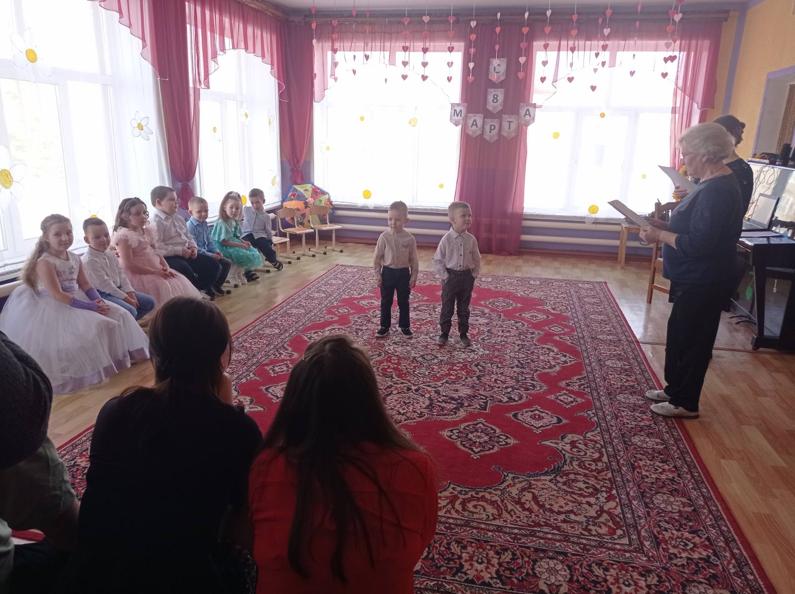 Воспитанники учреждения поздравили своих мам и бабушек с праздником. Они пели и танцевали, рассказывали им стихи, играли. Закончилось мероприятие вручением подарков для мам.